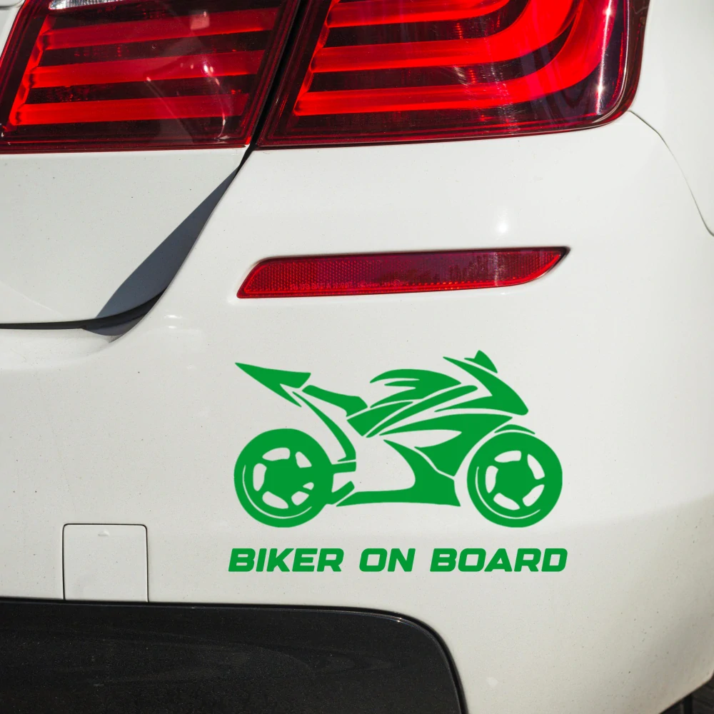 Samolepka Biker on board v.1 - zelená - 20 cm x 13-14cm