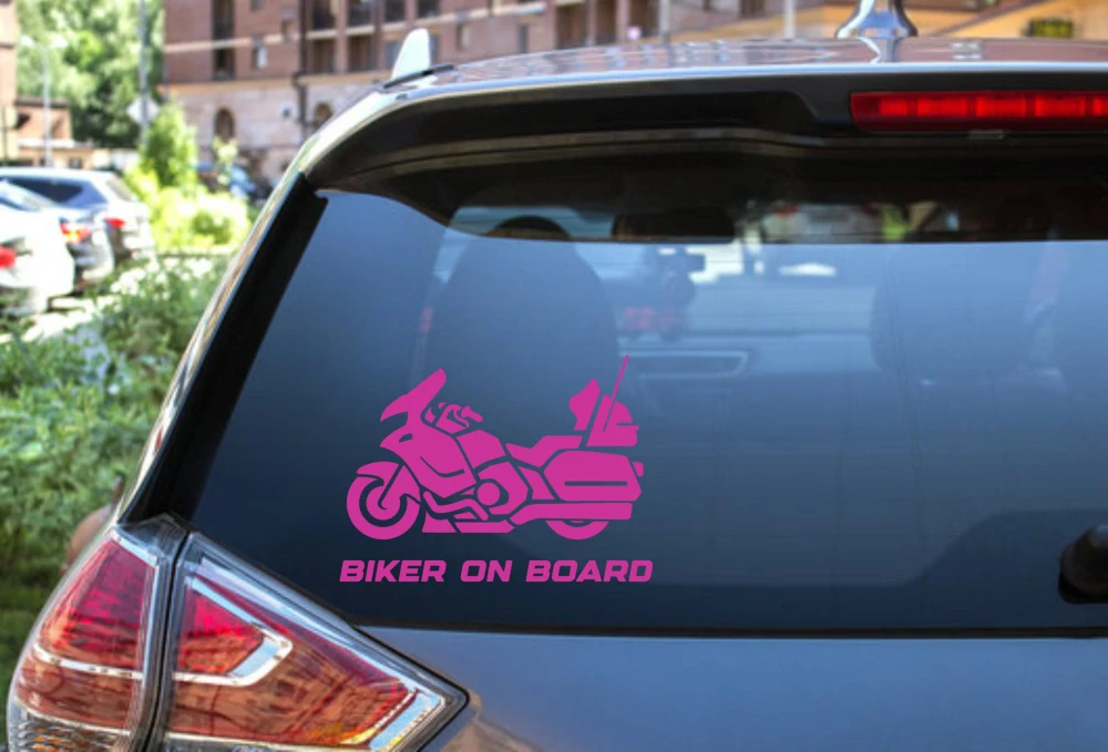 Samolepka Biker on board v.4 - magenta - tmavě růžová - 20 cm x 13-14cm
