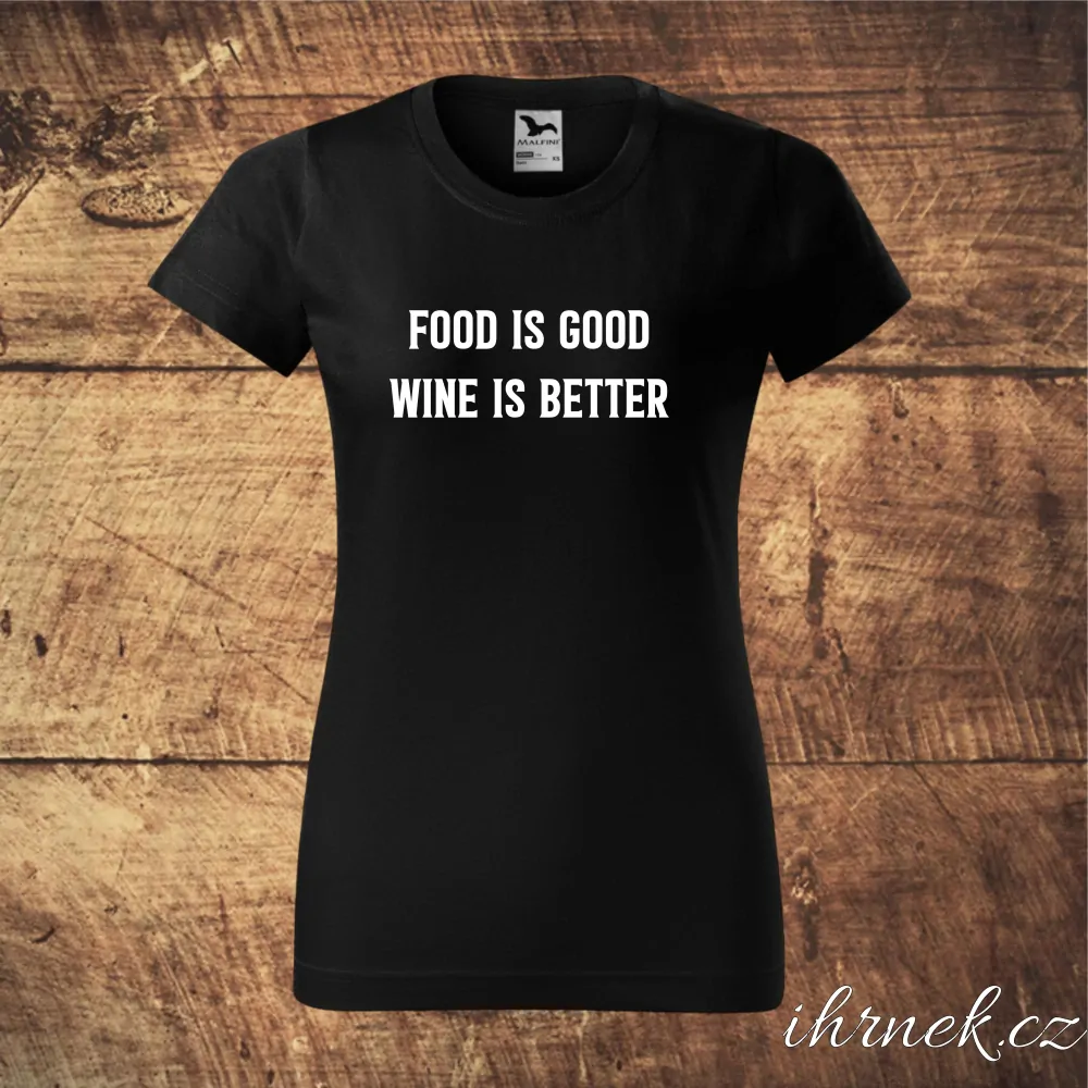 Tričko dámské Food is good, wine is better - černá - dámská M
