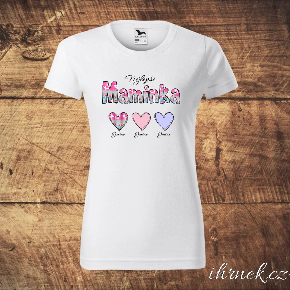 Tričko dámské Nejlepší maminka - srdce/květiny - bílé - dámské 2XLdo týdne od objednání > 10 ks349 Kč/ ks